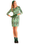• L’abito taglio impero verde con fantasia optical e arricciatura