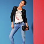 • Rock l’outfit con capri in denim e blazer rock con dettagli in ecopelle