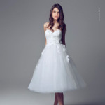 La palette cromatica della collezione passa da tocchi femminili di rosa al più classico bianco per passare al glamour avorio. Le forme degli abiti sono i più disparati: dai modelli ampi a quelli sirena, dai tagli impero fino ai modelli corti passando poi per tessuti strutturati ad altri più morbidi e fluttuanti.