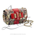 • La tracolla mini con fantasia multicolor tracolla dorata e dettalio in fiocco rosso e oro
