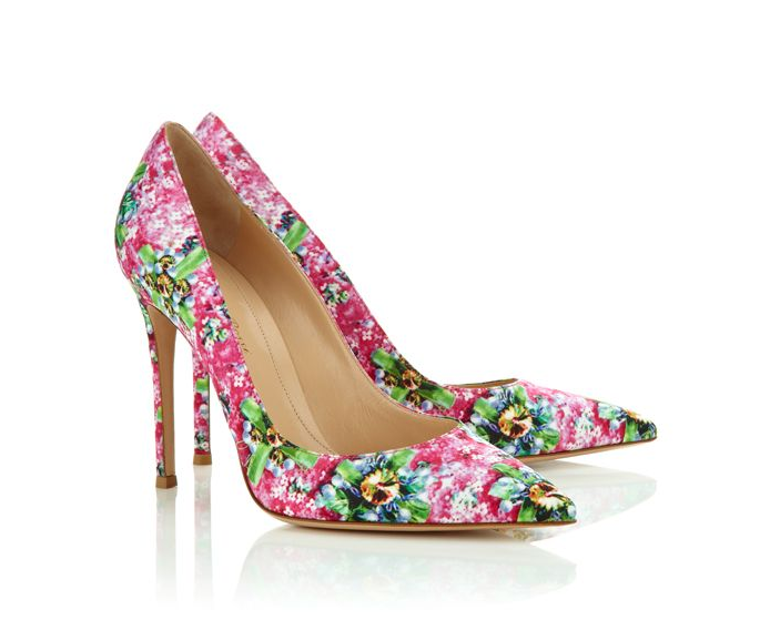 Le stampe colorate unite a disegni particolari e tagli studiati sono le caratteristiche fondamentali della collezione Mary Katrantzou for Gianvito Rossi in uscita per la primavera estate 2014; tra i modelli protagonisti troviamo le decolletes, gli ankle boots e un tronchetto aperto interpretati con queste stampe must come vi dicevamo e con tacchi non oltre i 9 cm. La palette cromatica della collezione sceglie molto nero ma soprattutto rosa, lime, turchese e verde protagonisti delle stampe floreali sui modelli.