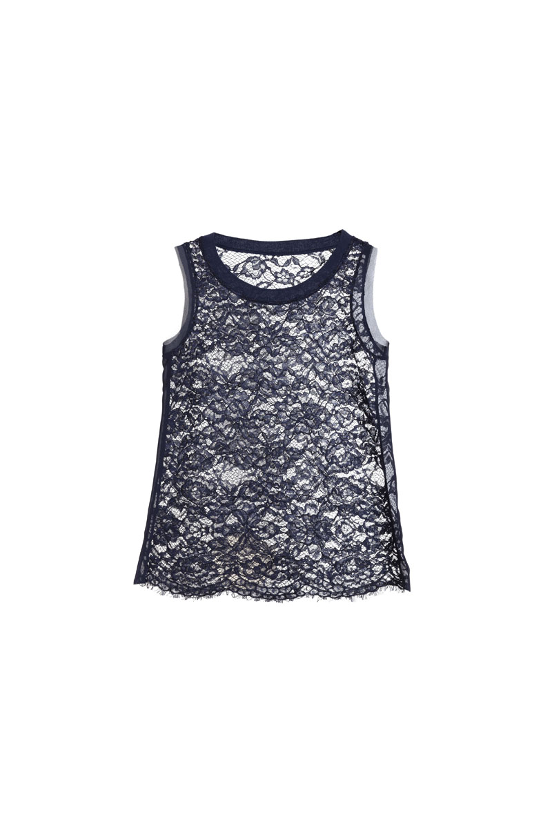 Tra i look più belli della nuova collezione restiamo affascinate da due completi, il primo è un romantico abitino in bianco e nero con gonna plissettata e contrasto di fantasie mentre il secondo è dato da una gonna midi in pizzo blu abbinata ad una semplice camicia bianca.