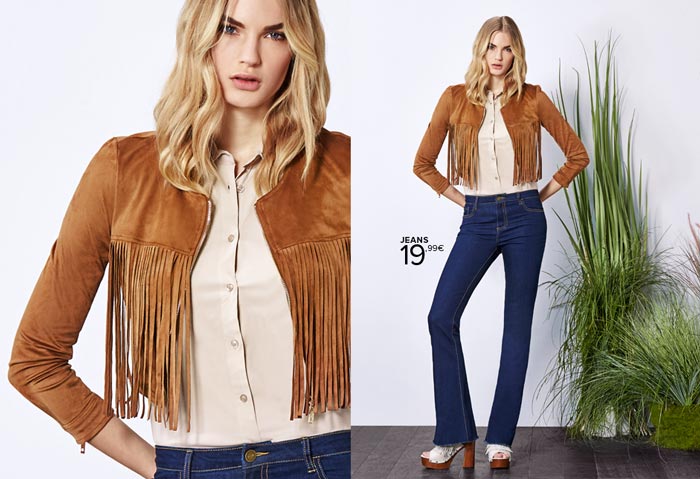 Le tendenze hippie si fanno sentire, per vestirti da vera ragazza degli anni settanta non rinunciare ad un chiodo color cammello sfrangiato, una camicia color pastello da brava ragazza e i jeans a zampa con vita alta. Prezzi a partire da 19,99 euro