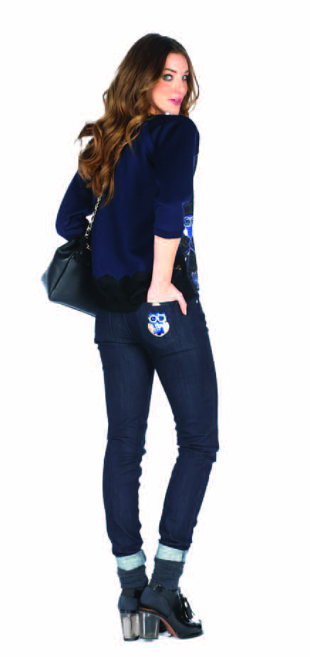 Il gufo come simbolo di portafortuna diventa un tormentone nella nuova collezione su abiti versatili e adatti a diverse occasioni: abiti e gonne a ruota dal mood anni ’50 vengono impreziositi da questa stampa, il gufo diventa un tocco di luce con piume e strass ed infine per i look più sportivi non possono mancare su felpe e bluse in raso da abbinare a jeans skinny. Per quanto riguarda i colori di questa tendenza restano quelli notturni di un elegante blu che vira dal bluette fino al più tenebroso navy.